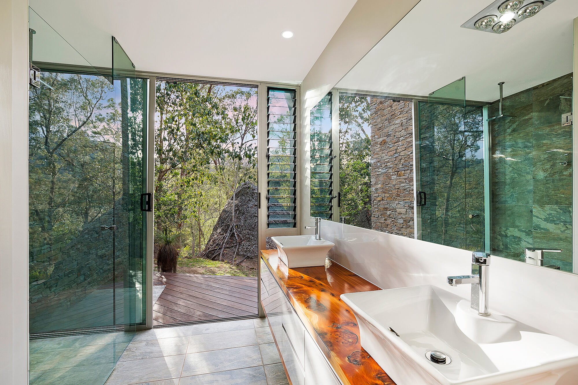 Louvre windows in a bathroom ensure excellent ventilation, preventing moisture buildup and enhancing air quality for a more refreshing and hygienic space.