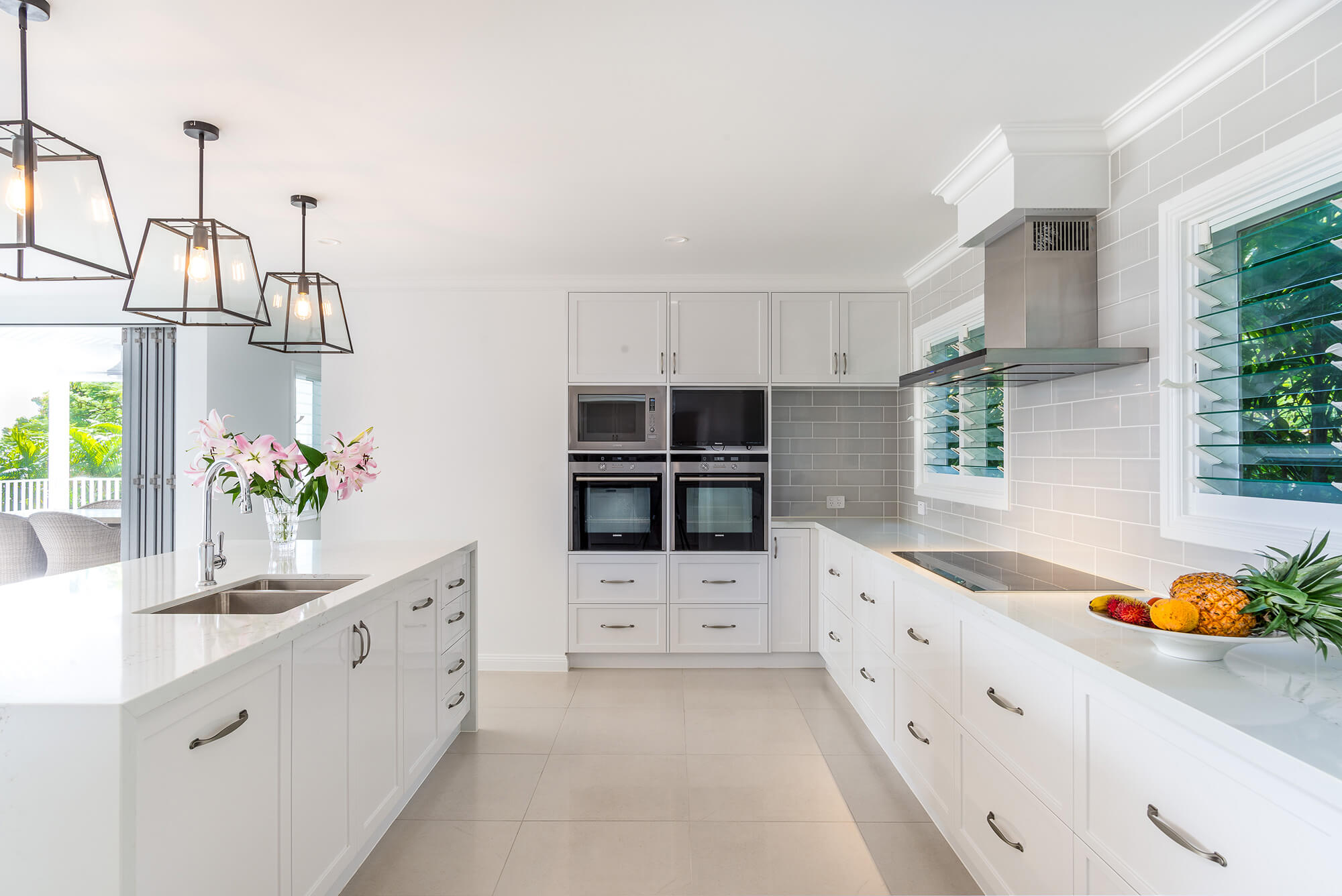 Louvre windows in a kitchen enhance air circulation, helping to dissipate cooking odors and maintain a fresh and pleasant atmosphere while allowing for adjustable natural light.